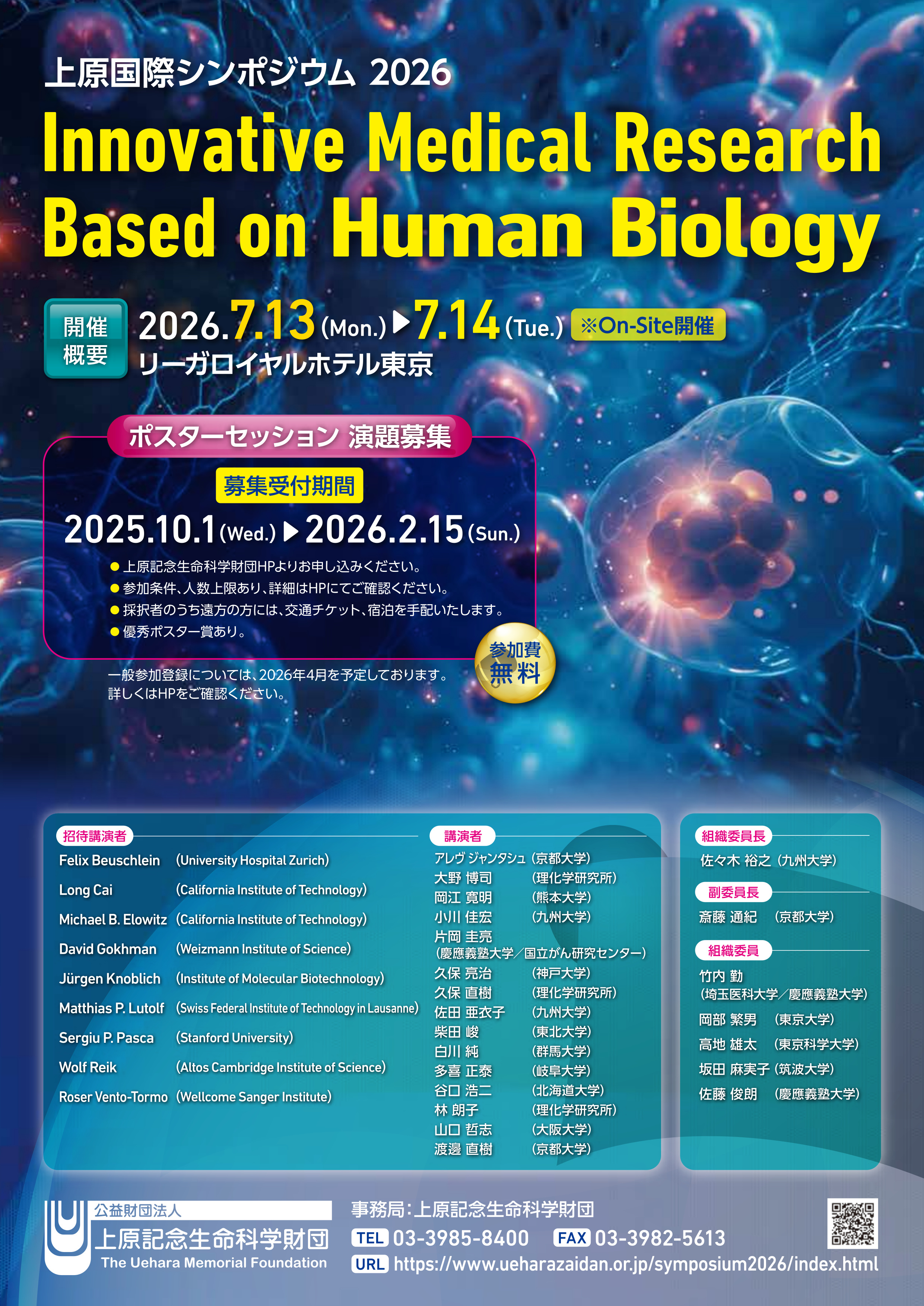 上原国際シンポジウム2026 ポスター演題募集のご案内(2/15締切)