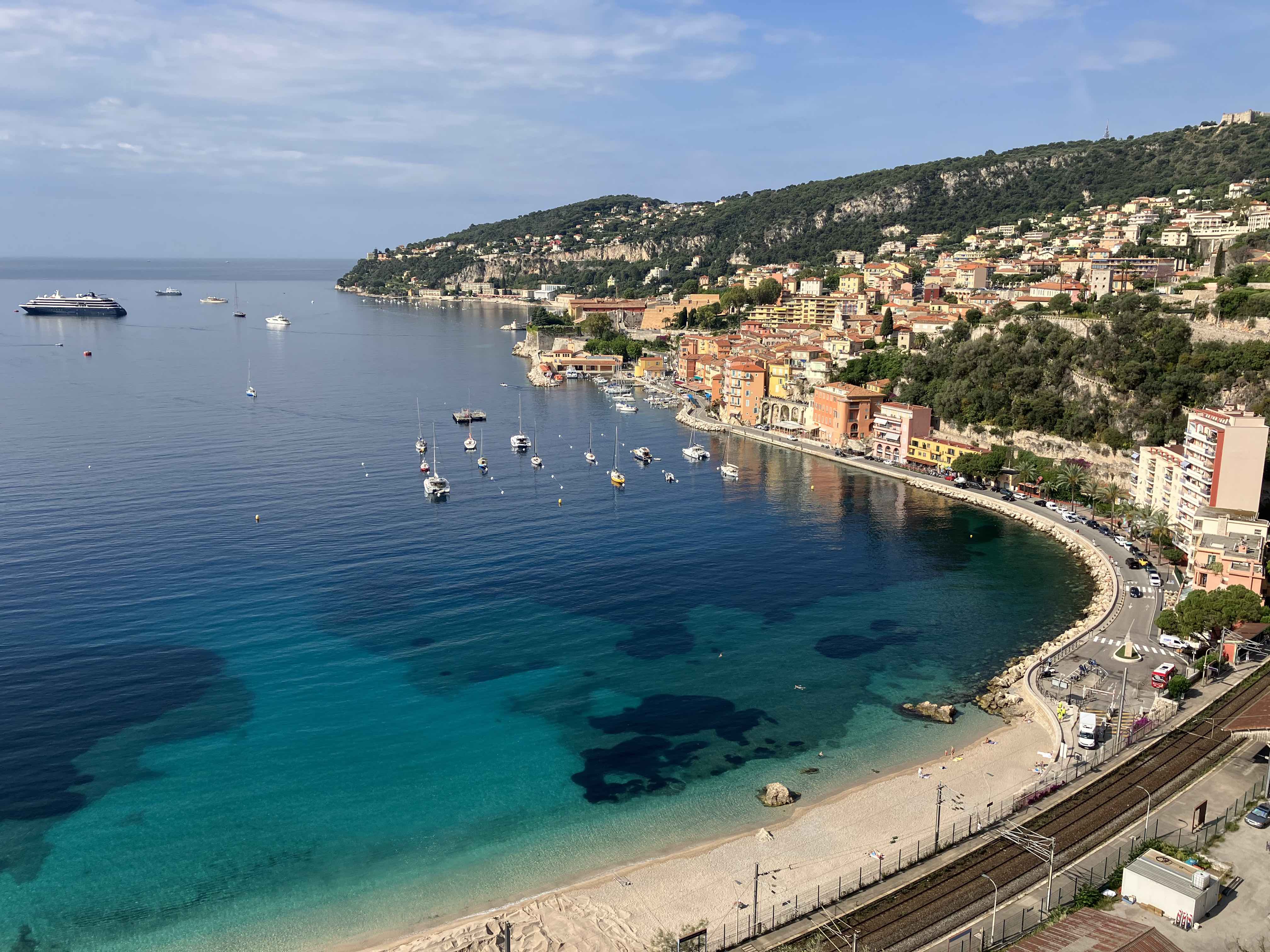ヴィルフランシュ=シュル=メールの街(右手前)と地中海