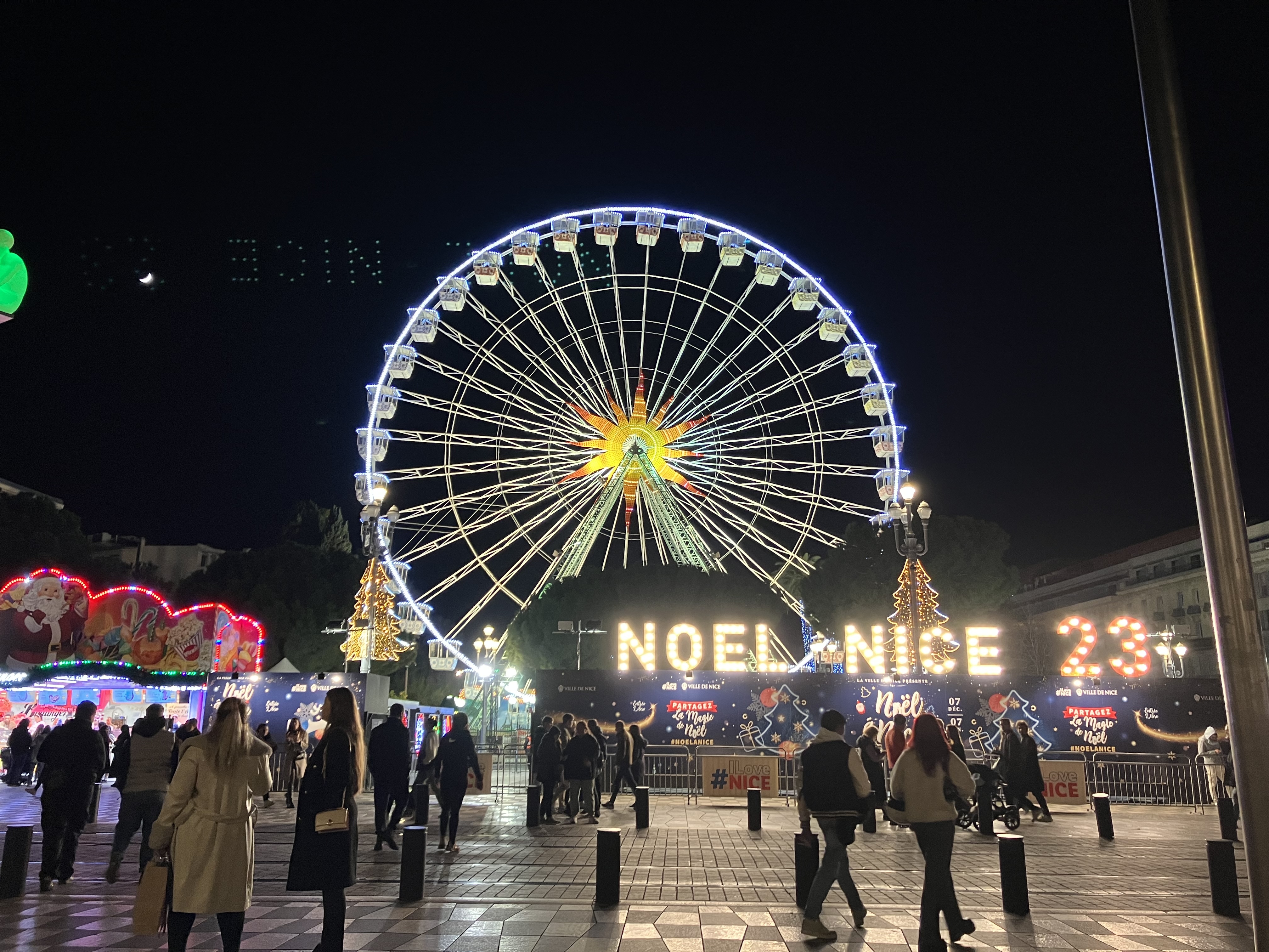 ニースのクリスマスマーケット。移動遊園地がやってきて賑やかです。