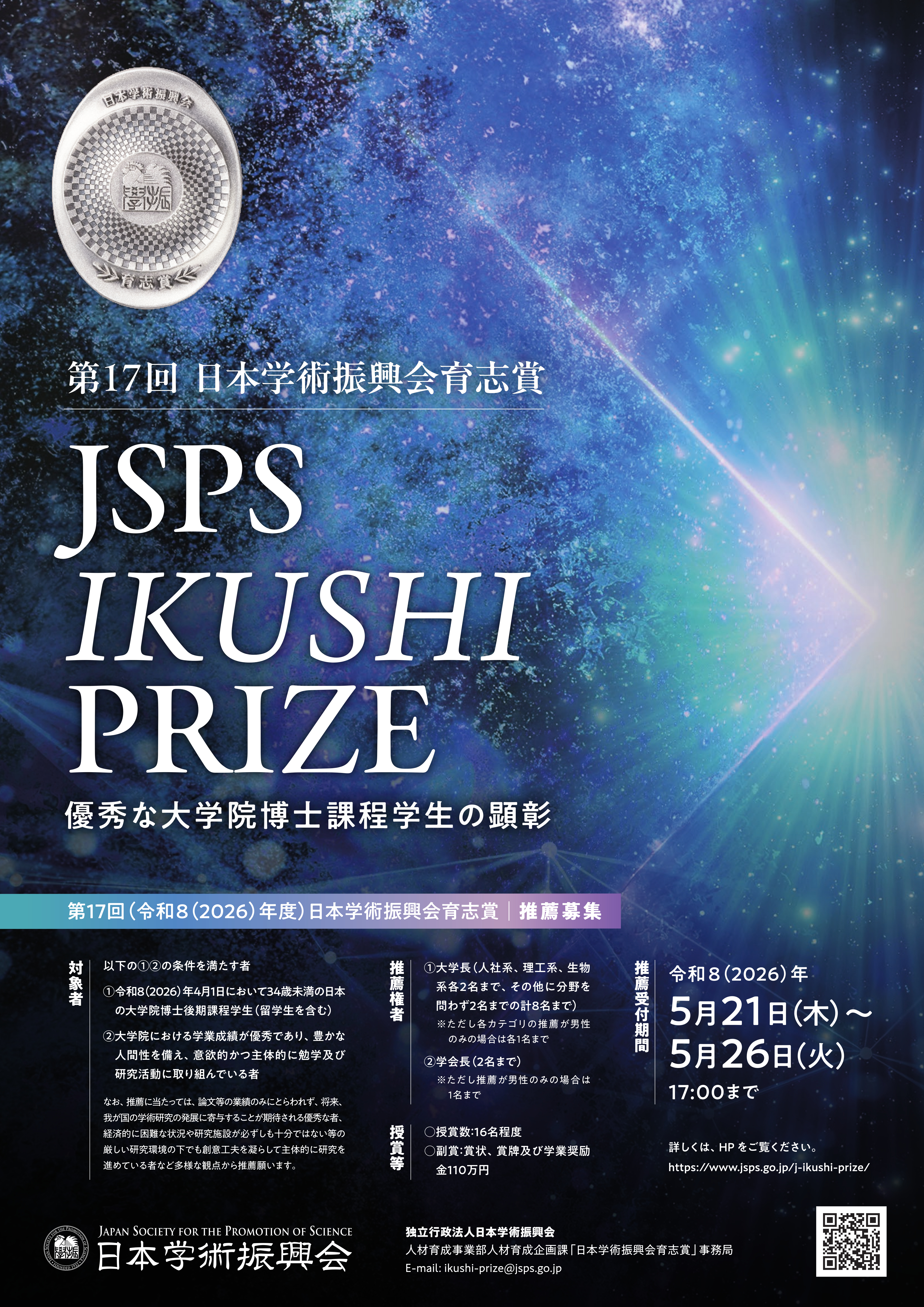 第17回(令和8(2026)年度)日本学術振興会 育志賞受賞候補者の推薦について