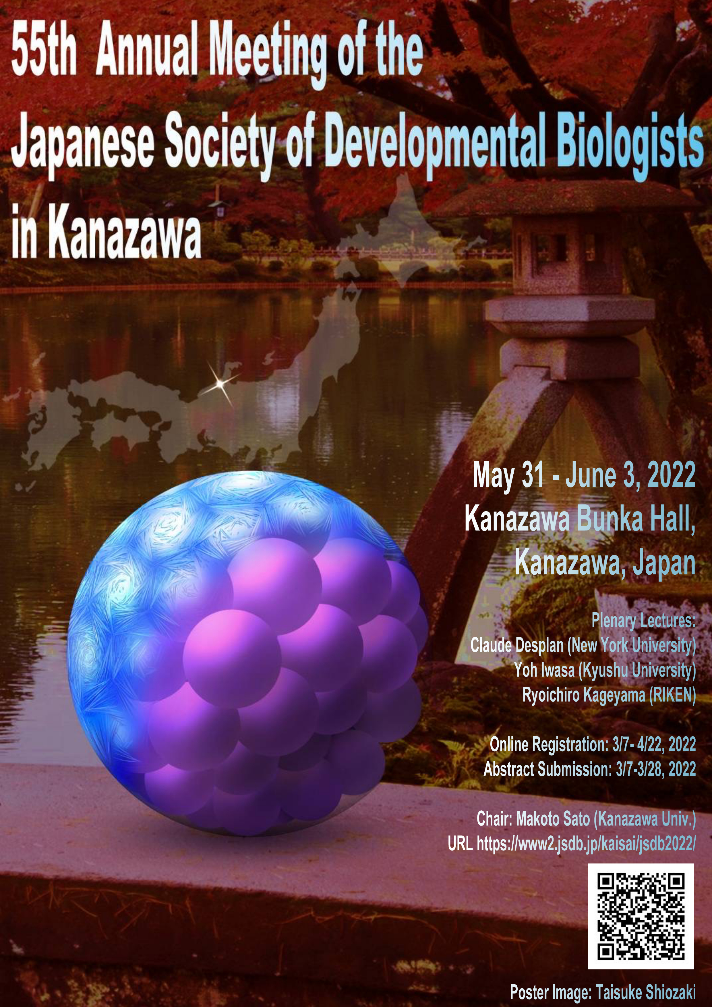 Thank you for attending the 55th Annual Meeting of the Japanese Society for Developmental Biology, which was held from May 31 to June 3 at the Kanazawa City Cultural Hall. We have been able to close the meeting successfully, having 400 participants in total.