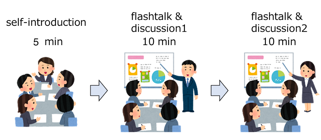 First of all, each of you should introduce yourself for one minute using the presentation materials (about 5 minutes).