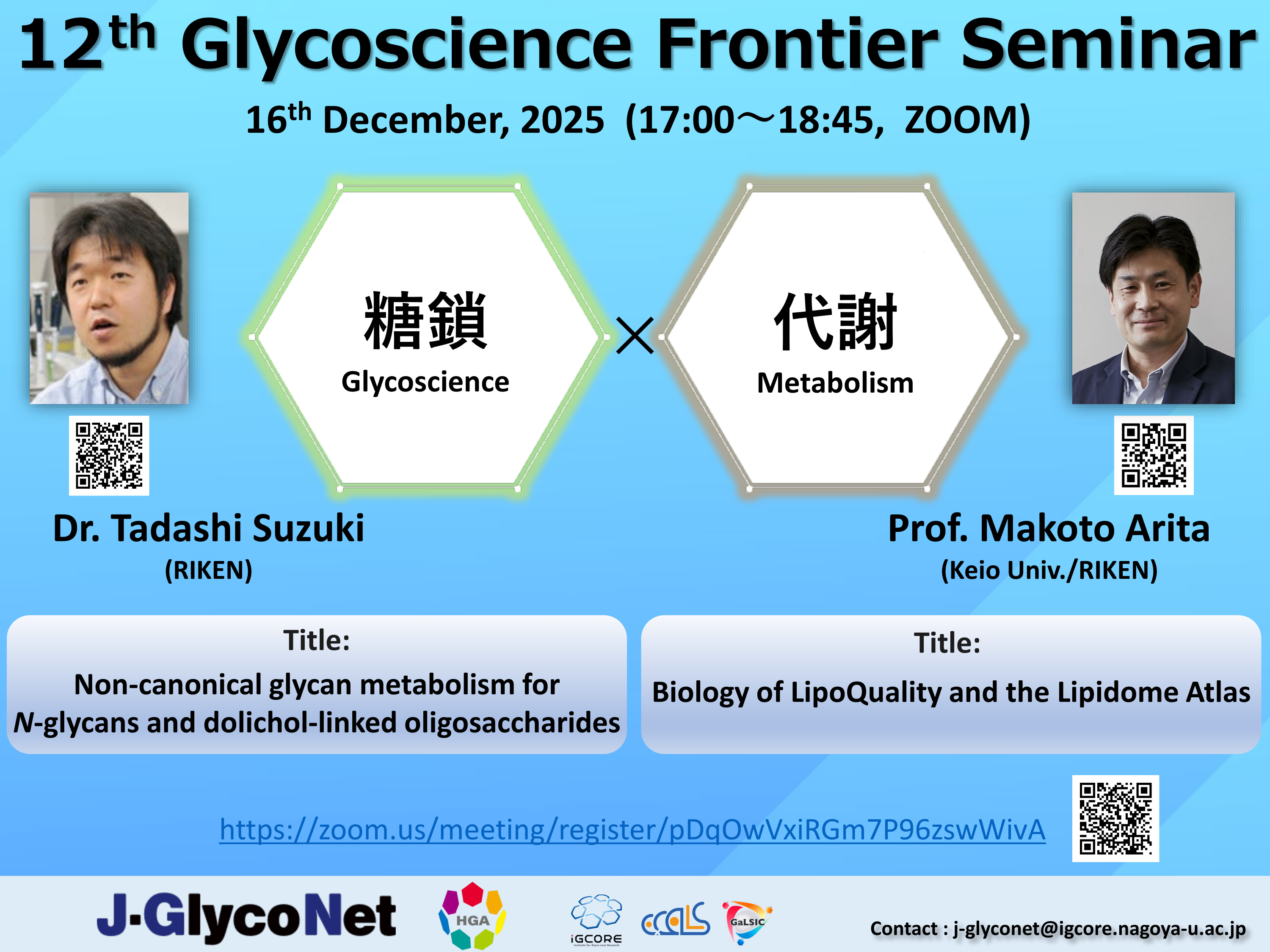 第12回Glycoscience Frontier Seminar開催のお知らせ(12月16日オンライン)